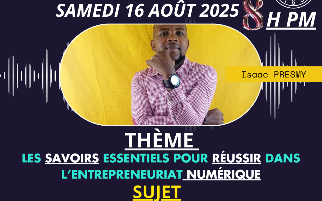 Les savoirs essentiels pour réussir dans l’Entrepreneuriat Numérique par Isaac PRESMY | Août 28, 2025 Cet évènement a expiré.